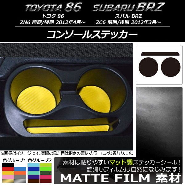 コンソールステッカー マット調 トヨタ/スバル 86/BRZ ZN6/ZC6 前期/後期 2012年3月〜 色グループ1 入数:1セット(3枚) AP-CFMT2221 ¥7,560 |