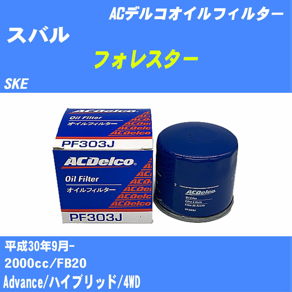 ≪スバル フォレスター≫ オイルフィルター SKE H30.9- FB20 ACデルコ PF303J オイルエレメント 数量1点 【H10ZKN】 ¥970 |