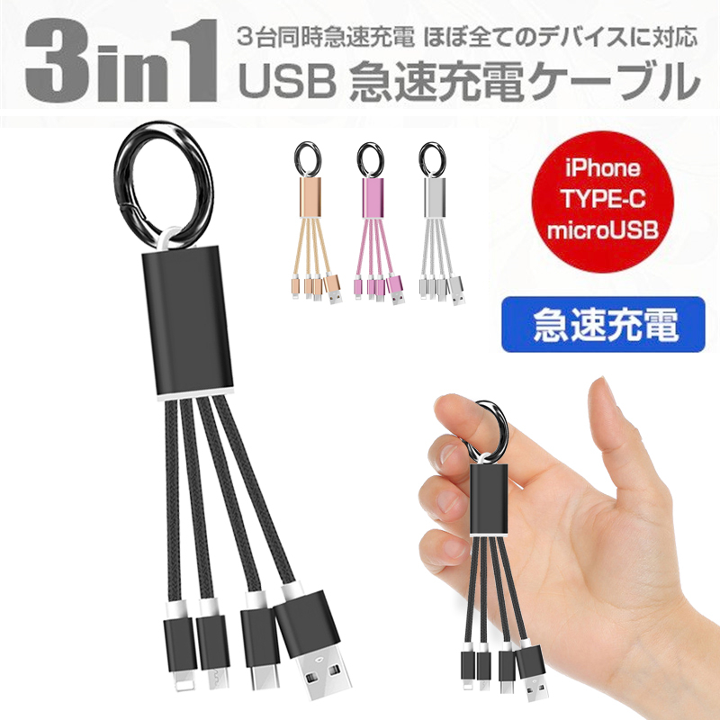 iPhone17ケーブル Type-Cケーブル Micro USBケーブル 3in1充電ケーブル iPhone16 Air 17 Pro 17ProMax 超小型 ストラップ式 急速充電ケー ¥996 |