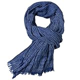 メンズ シェブロン柄 大判 シフォン ストール コットン100% / Men's Chevron Chiffon Stole Cotton100% (Navy) [並行輸入品]