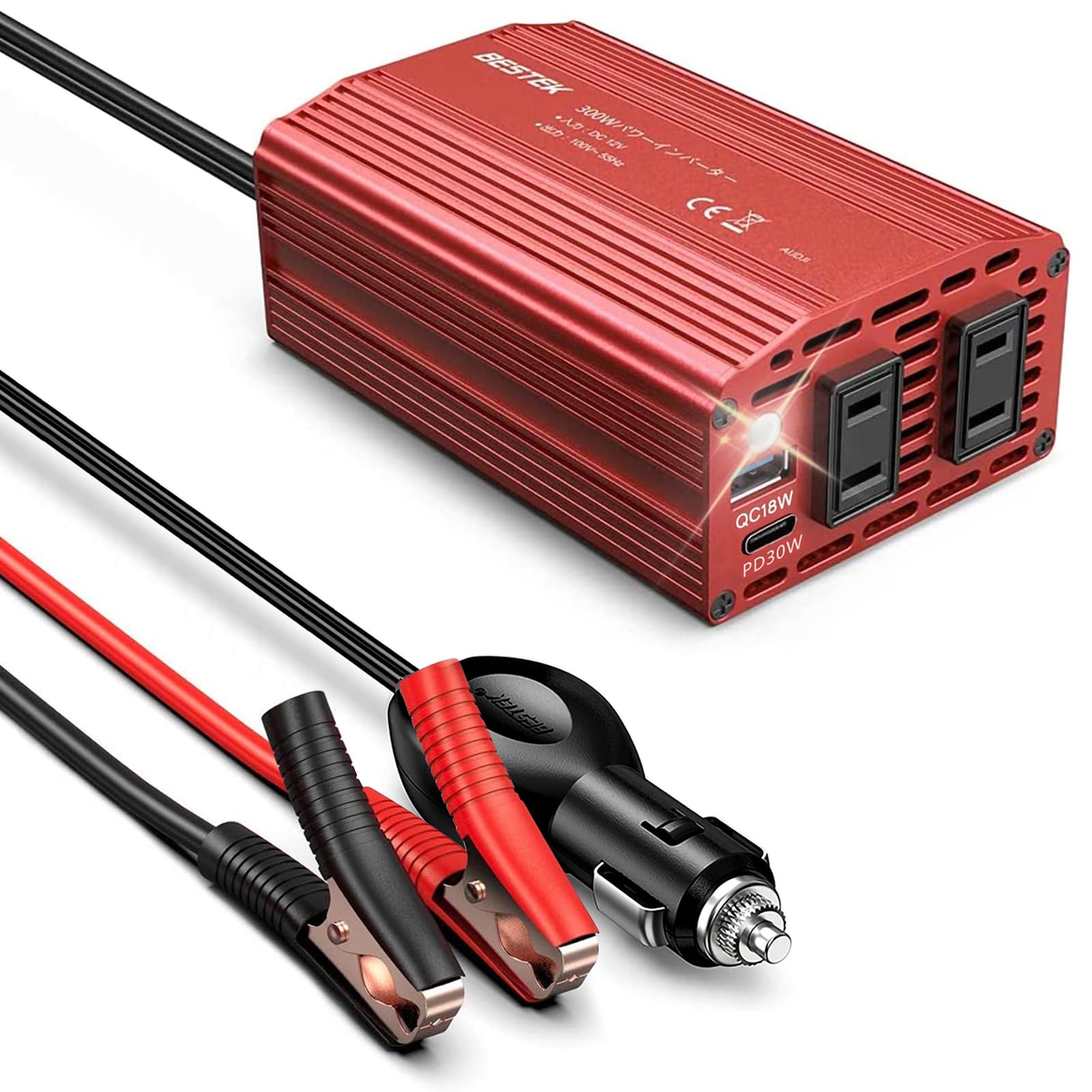 BESTEK 修正正弦波 300Wインバーター USB-C PD 30W + USB-A QC 18W 車載用インバーター DC12VをAC100Vに変換 シガーソケット コンセント ¥6,029 |