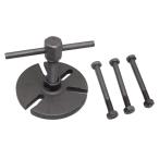 | バリエーションコード : 2B205TCIJX ・クランクシャフトに圧入されているフライホイールを外す為のプレート型 特殊工具です。 ・フライホイール に損傷を与えずに 取り外す ために不可欠な 工具です。 ・オートバイ ・チェーンソー ・芝刈り機などの小型エンジンのクランクシャフトからフライホイールを取り外すツールをなります。 ・適合車種については掲載寸法よりお客様にてご判断をお願いいたします。 ・プレート直径 : 109mm 厚み10mm ・センターナット径:?16 ボルト ・フライホイール固定用 ボルト ?8 ボルト (3本) | |