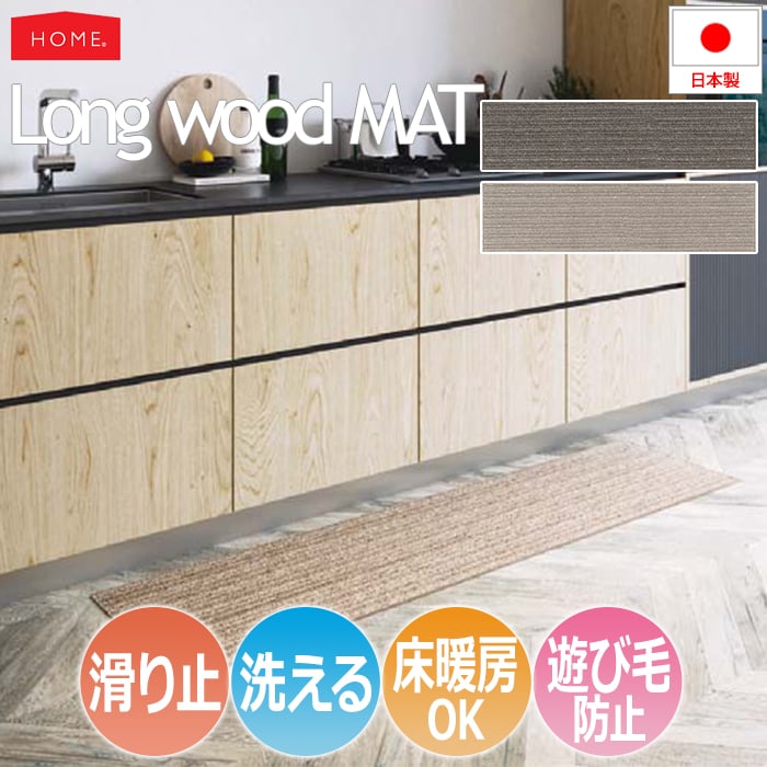 洗える キッチンマット ドライクリーニング対応 約45×180cm Long wood MAT ロングウッドマット(S) ホットカーペット・床暖房対応 遊び毛 ¥6,600 |
