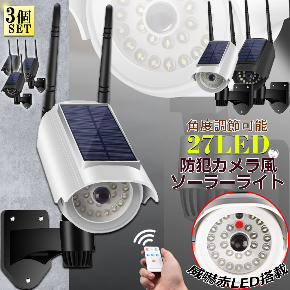ソーラーライト 屋外 led 3個セット ダミーカメラ 防犯カメラ型 ダミーカメラ 27LED センサーライト 屋外照明 人感センサーライト 3つ点 ¥3,600 |