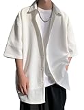 | [SoarUnique] 開襟 半袖 メンズ|厚手コットン100%|夏服 カジュアル 羽織り|ゆったりオーバーサイズ|刺繍入り 白 ユニセックスシャツ|ゆったりシルエットで快適|通気性◎ 春夏秋にぴったり|カジュアルもきれいめも ¥2,280 |