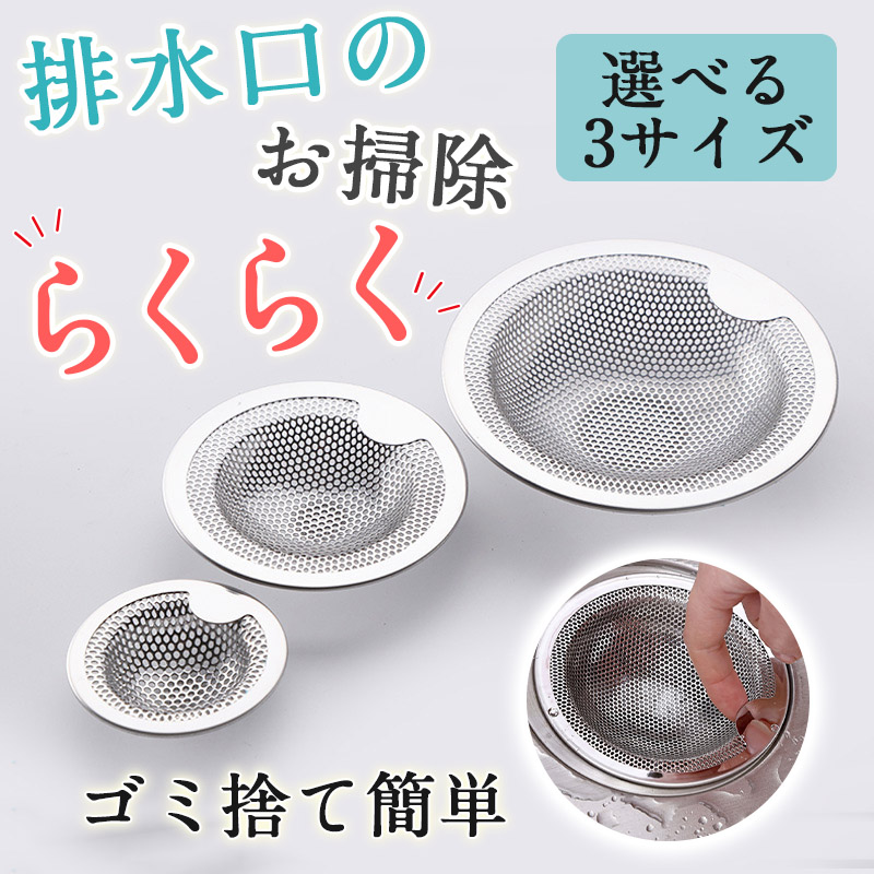 | SNSで大人気の排水溝ゴミ受け。お使いのごみ受けを外しポンと置くだけ。底の丸い形状とパンチングメタルでゴミが集まる!ステンレス鋼を使用しているので、衛生的で錆びにくく丈夫。メッシュ部分はパンチング加工。金属糸を編んだ製品と違い、金属糸の交差した部分に髪の毛などが入り込みません。集めたゴミが取りやすいです。凹凸がなく、汚れても洗剤をつけたスポンジで拭くだけで簡単に汚れが落とせます。ツマミ付きで取り外しが簡単。ユニットバス用、お風呂の排水口、台所シンク 内径3.5から7.5の排水溝に適応します。 サイズS M Lサイズについての説明S 内径3.4cm 外径5.2cm 高さ1.2cm M 内径5cm 外径7.6cm 高さ1.4cm L 内径7.5cm 外径10.2cm 高さ2cm素材ステンレス色2個セット備考 ●サイズ詳細等の測り方はスタッフ間で統一、徹底はしておりますが、実寸は商品によって若干の誤差(1cm〜3cm )がある場合がございますので、予めご了承ください。●製造ロットにより、細部形状の違いや、同色でも色味に多少の誤差が生じます。●パッケージは改良のため予告なく仕様を変更する場合があります。▼商品の色は、撮影時の光や、お客様のモニターの色具合などにより、実際の商品と異なる場合がございます。あらかじめ、ご了承ください。▼生地の特性上、やや匂いが強く感じられるものもございます。数日のご使用や陰干しなどで気になる匂いはほとんど感じられなくなります。▼同じ商品でも生産時期により形やサイズ、カラーに多少の誤差が生じる場合もございます。▼他店舗でも在庫を共有して販売をしている為、受注後欠品となる場合もございます。予め、ご了承お願い申し上げます。▼出荷前に全て検品を行っておりますが、万が一商品に不具合があった場合は、お問い合わせフォームまたはメールよりご連絡頂けます様お願い申し上げます。速やかに対応致しますのでご安心ください。 | |