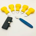 | こちらの7点セットでケースを容易に取り外すことが出来ます。 腕時計の電池交換において自分で交換することが可能になります。 2点支持オープナーと6種のドライバーの最強セット 2点支持オープナーは開け口の調整も可能で幅広く対応! 開閉部調整可能範囲( 20mm~ 55mm) 2点支持オープナーはスクリュータイプの腕時計に対応します。 6種のドライバーは一般時計の裏ブタ枠等のこじ開けにてご使用いただける工具 (ドライバー・へら) 6点セットです。 薄くても安全性が高く強度が有ります。 使い方も簡単で裏蓋の溝にスッと差込み開くだけ! 6種類セットなので様々な腕時計に対応しています。 | |