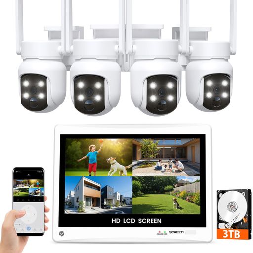 【5MP・360°首振り自動追尾】防犯カメラ 屋外 ワイヤレス YESKAMOO 12インチ一体型IPS防犯モニターとカメラ4台セット 10台まで増設 AI人 ¥58,454 |