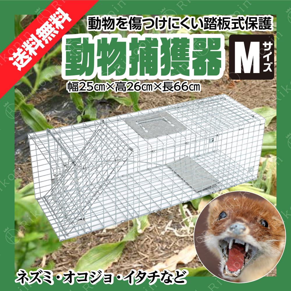| | 動物捕獲器 動物捕獲檻 猫 アニマルトラップ Mサイズ 66cm×26cm×23cmトラップ 箱罠 イタチ 駆除 捕獲 踏板式 捕獲機 動物 小動物 子猫 罠 鼠 保護 庭 畑 餌 ア ¥3,279 |