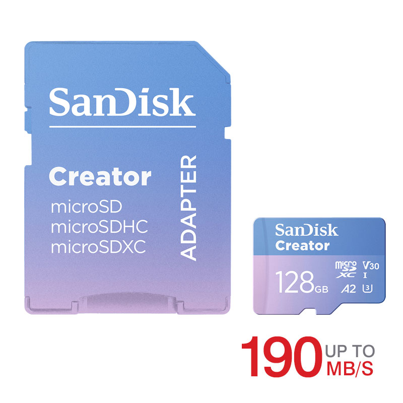 マイクロsdカード microSDXC 128GB SanDisk Creator UHS-I U3 V30 A2 4K R:190MB/s W:90MB/s SDSQXAA-128G-GN6MS SDアダプタ付 Switch対 ¥5,099 |