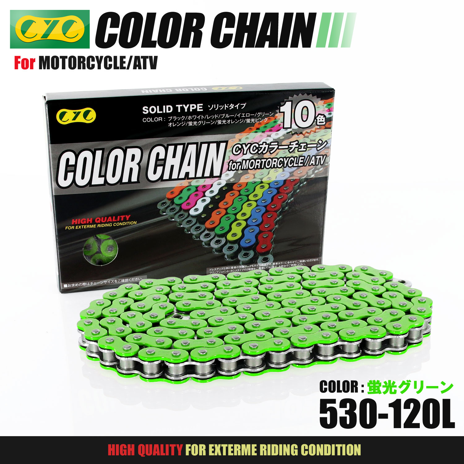 CYCバイクチェーン 530-120L 蛍光グリーン YZX750 FZS1000 フェザー YZF1000 YZF-R1 RZV500 SR500 FZR600 FZ-6S/N ¥8,390 |